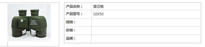 海军军标级望远镜(浮水,防水); 10X50望远镜完全为户外运动的需求而设计,全能可靠,满足户外运动千变万化的各种要求。大口径,高亮度和高对比度: 大口径,全面镀增透膜,多层宽带增透绿膜镜头,全面确保更高亮度和对比度,在昏暗的环境下,比普通的望远镜看到更多的景物细节。高级棱镜,成像清晰:BAK4镀膜高级棱镜,即使是边缘像质也同样清晰明亮。防霉防雾,可浮于水面:充氮防水防霉防雾完全适合野外环境。短筒设计,可浮于水面。内置测距分划板,特设测距计算尺。充氮防水防雾防霉,完全适合野外环境。BAK4特级棱镜,呈现完美景象。全面多层宽带增透(绿)膜,色彩逼真还原。内置罗盘,方位一目了然,内置夜晚照明灯。